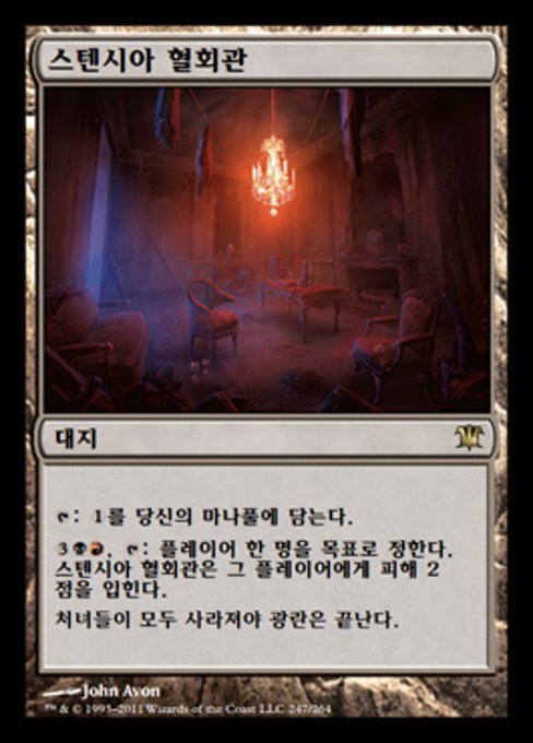 LegalitiesLegal Duel Penny Legacy Modern Vintage Commander Oathbreaker Not Legal Brawl Predh Future Pauper Alchemy Pioneer Historic Standard Timeless Gladiator Oldschool Premodern Standardbrawl Paupercommander RulingsLike other lands, Stensia Bloodhall is colorless. The damage it deals is from a colorless source, even though activating its ability requires colored mana.
