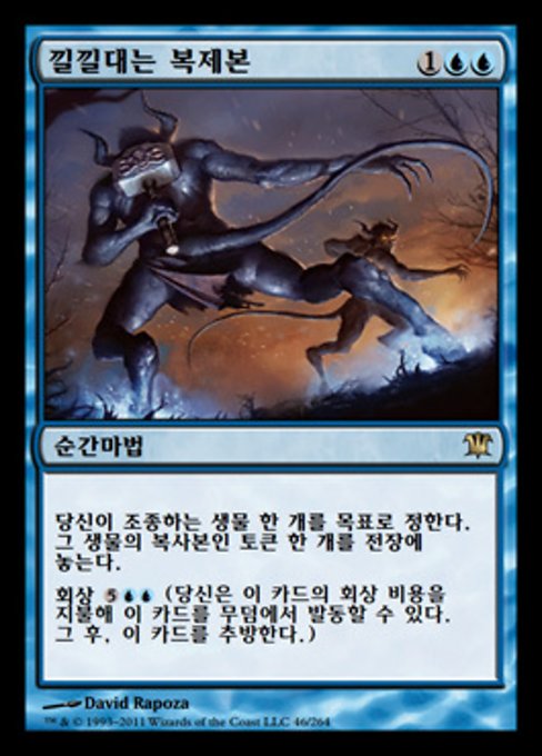 |  Variations— Parts— | Équivalent caquetantMettez sur le champ de bataille un jeton qui est une copie d'une créature ciblée que vous contrôlez. Flashback