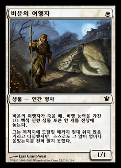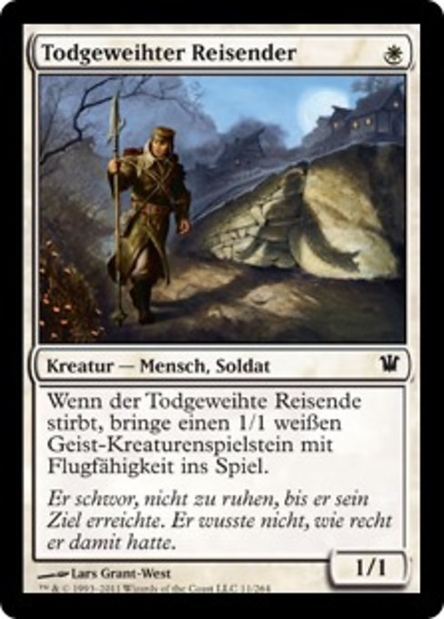 |  Variations— Parts— | Viaggiatore Condannato1 / 1 Quando il Viaggiatore Condannato muore, metti sul campo di battaglia una pedina creatura Spirito 1/1 bianca con volare.