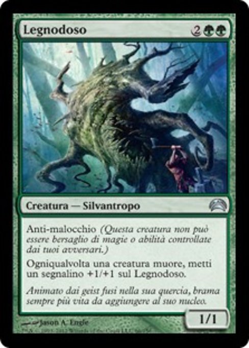 |  Variations— Parts— | Legnodoso1 / 1 Anti-malocchio (Questa creatura non può essere bersaglio di magie o abilità controllate dai tuoi avversari.) Ogniqualvolta una creatura muore, metti un segnalino +1/+1 sul Legnodoso.