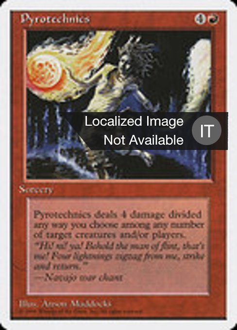 ![]() Variations— Parts— | PirotecniaPyrotechnics deals 4 damage divided as you choose among any number of targets.