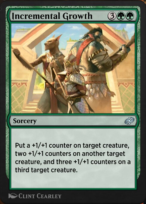 LegalitiesLegal Duel Brawl Penny Predh Legacy Modern Pioneer Vintage Historic Timeless Commander Gladiator Oathbreaker Not Legal Future Pauper Alchemy Standard Oldschool Premodern Standardbrawl Paupercommander RulingsYou must choose three different targets in order to cast Incremental Growth. You decide how many +1/+1 counters each creature will get as part of casting the spell.