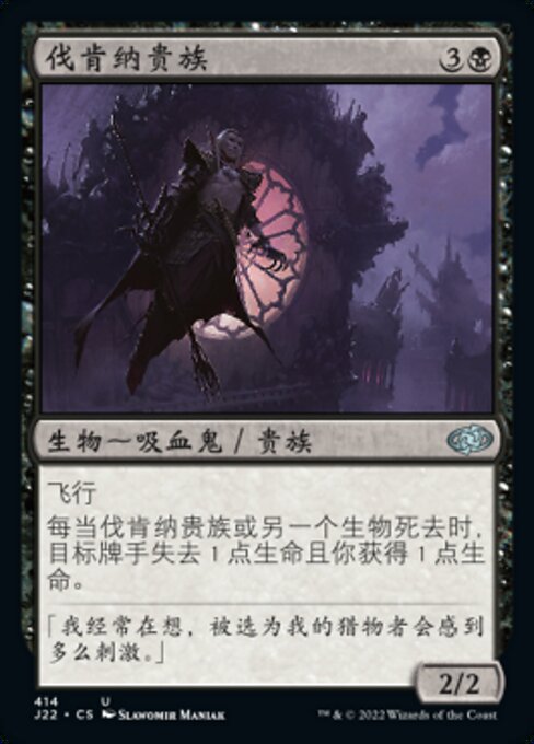 |  Variations— Parts— | Falkenrath Noble2 / 2 Flying Whenever this creature or another creature dies, target player loses 1 life and you gain 1 life.
