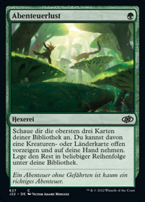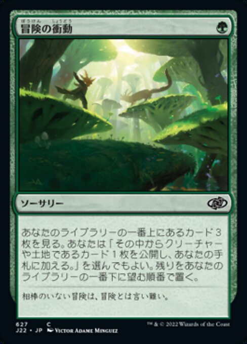 |  Variations— Parts— | Adventurous ImpulseLook at the top three cards of your library. You may reveal a creature or land card from among them and put it into your hand. Put the rest on the bottom of your library in any order.
