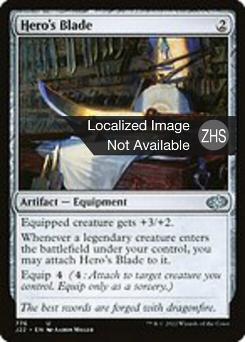 ![]() Variations— Parts— | Hero's BladeEquipped creature gets +3/+2. Whenever a legendary creature you control enters, you may attach this Equipment to it. Equip