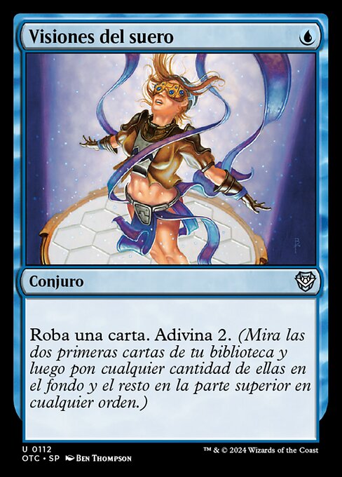 |  Variations— Parts— | Visiones del sueroRoba una carta. Adivina 2. (Mira las dos primeras cartas de tu biblioteca, luego pon cualquier cantidad de ellas en el fondo de tu biblioteca y el resto en la parte superior en cualquier orden.)