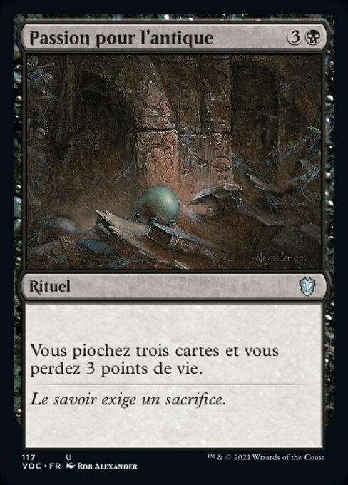 ![]() Variations— Parts— | Passion pour l'antiqueVous piochez trois cartes et vous perdez 3 points de vie.