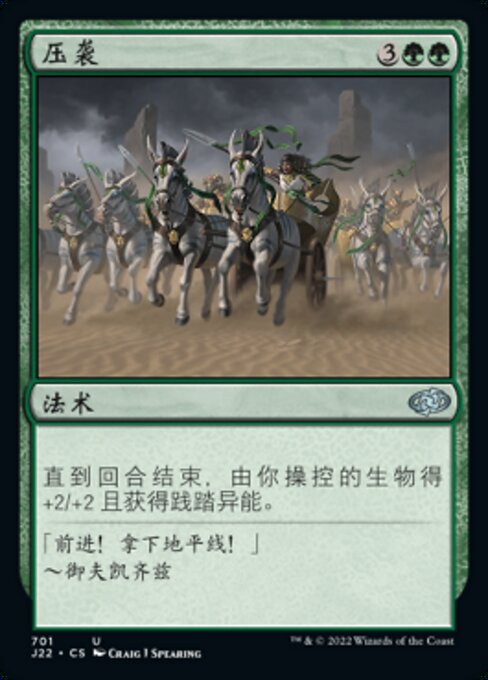 ![]() Variations— Parts— | TrionfareLe creature che controlli prendono +2/+2 e hanno travolgere fino alla fine del turno.