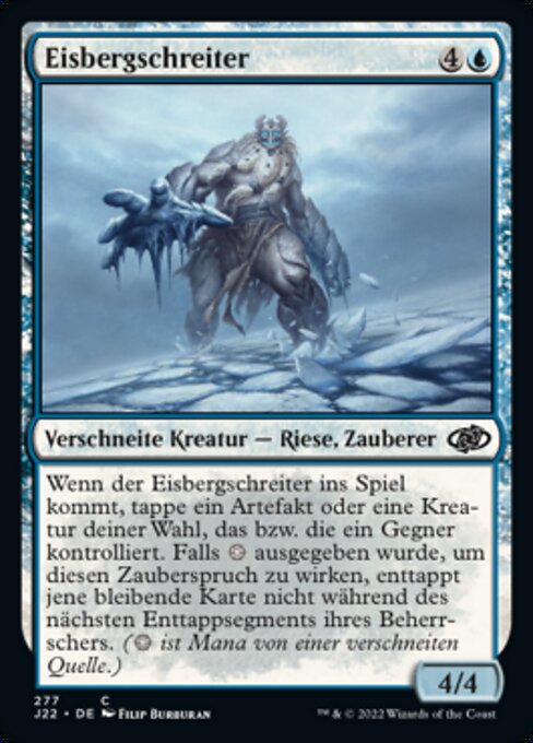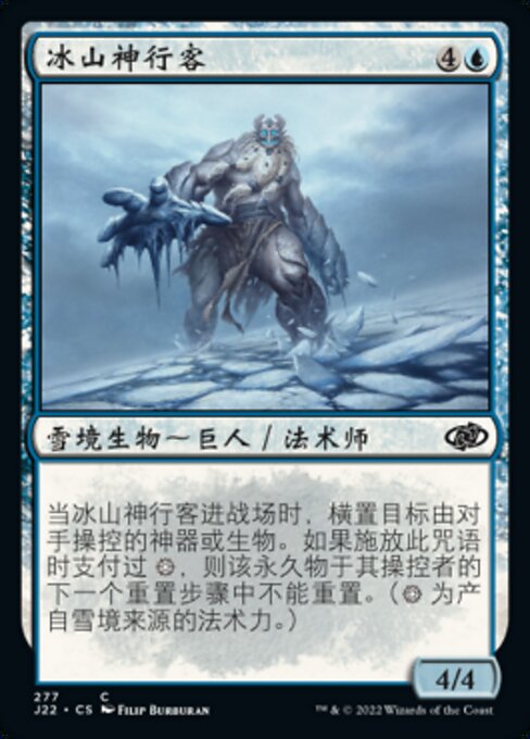 ![]() Variations— Parts— | 氷山の徘徊者4 / 4 氷山の徘徊者が戦場に出たとき、アーティファクトやクリーチャーのうち対戦相手がコントロールしている1つを対象とする。それをタップする。この呪文を唱えるために