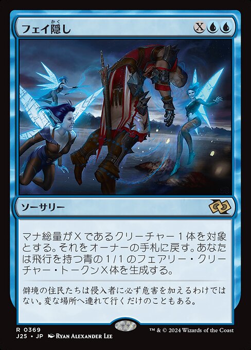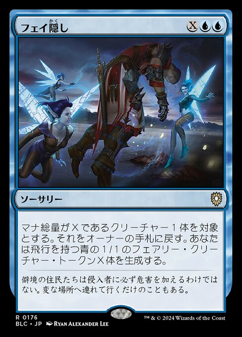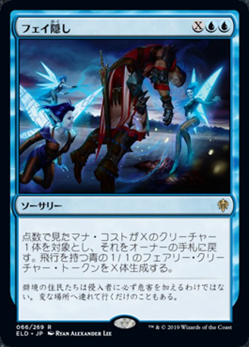![]() Variations— Parts— | フェイ隠しマナ総量がXであるクリーチャー1体を対象とする。それをオーナーの手札に戻す。あなたは飛行を持つ青の1/1のフェアリー・クリーチャー・トークンX体を生成する。