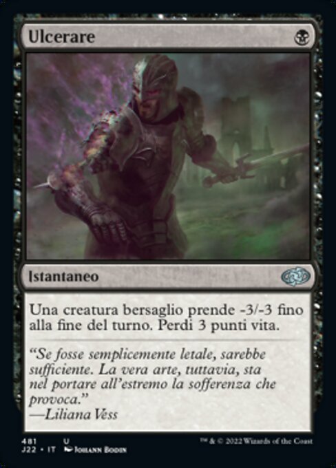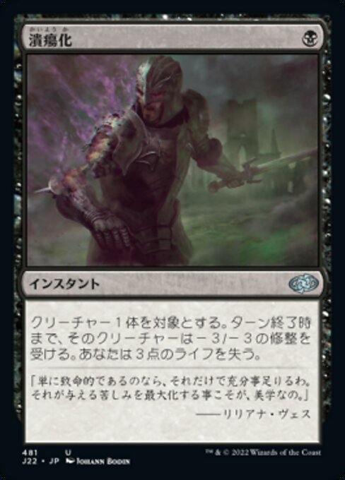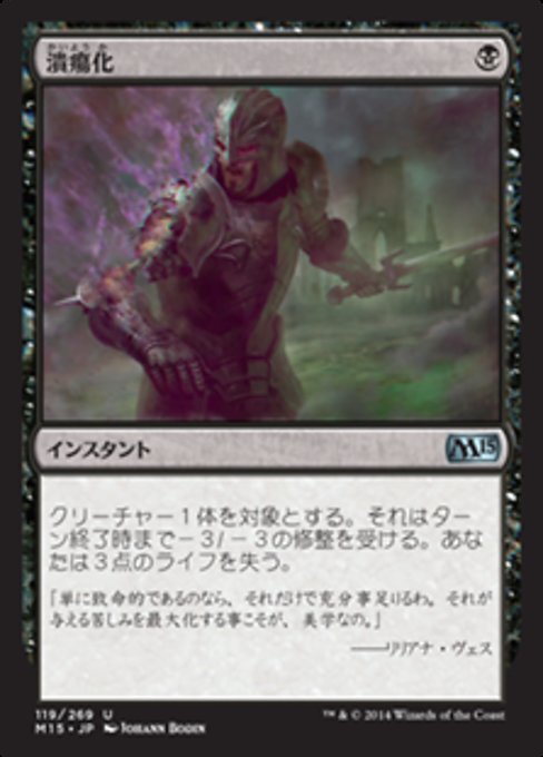 ![]() Variations— Parts— | 潰瘍化クリーチャー1体を対象とする。ターン終了時まで、そのクリーチャーは-3/-3の修整を受ける。あなたは3点のライフを失う。