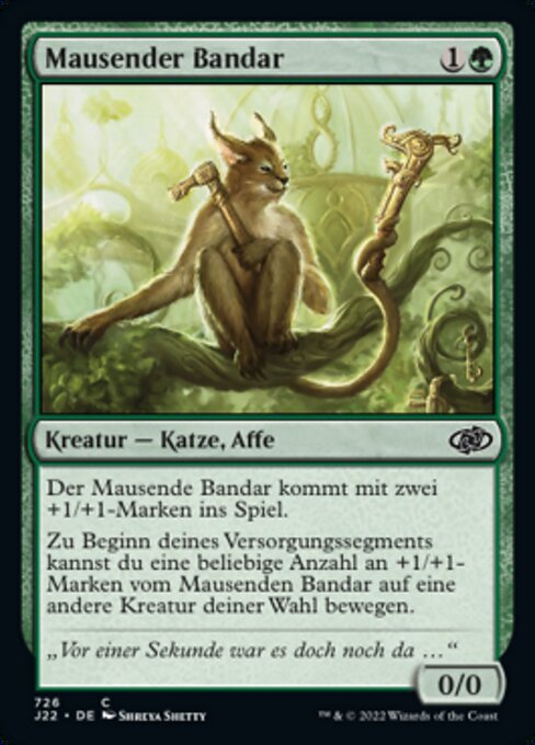 |  Variations— Parts— | 灵巧猫猴0 / 0 灵巧猫猴进战场时上面有两个+1/+1指示物。 在你的维持开始时,你可以将灵巧猫猴上任意数量的+1/+1指示物移至另一个目标生物上。