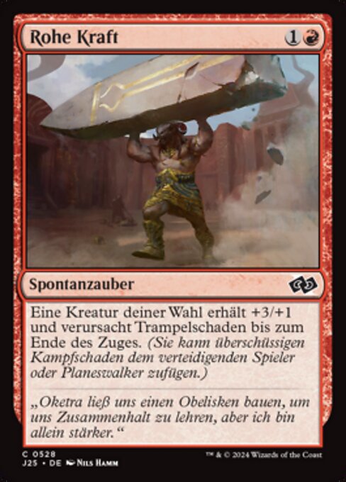 ![]() Variations— Parts— | Brute StrengthTarget creature gets +3/+1 and gains trample until end of turn. (It can deal excess combat damage to the player or planeswalker it's attacking.)