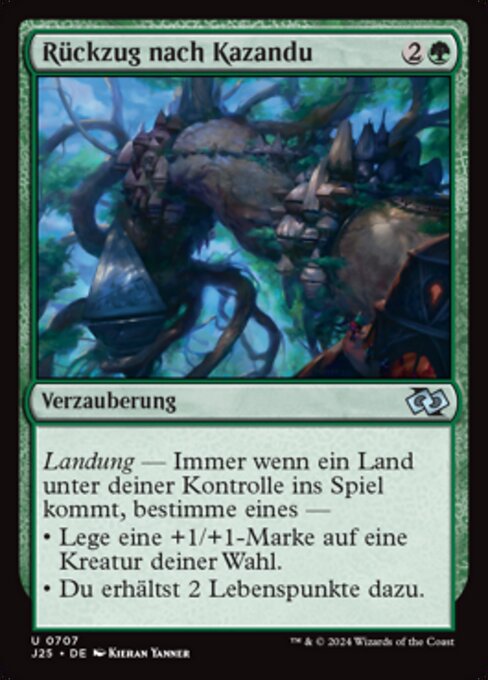 ![]() Variations— Parts— | Retreat to KazanduLandfall — Whenever a land you control enters, choose one — • Put a +1/+1 counter on target creature. • You gain 2 life.