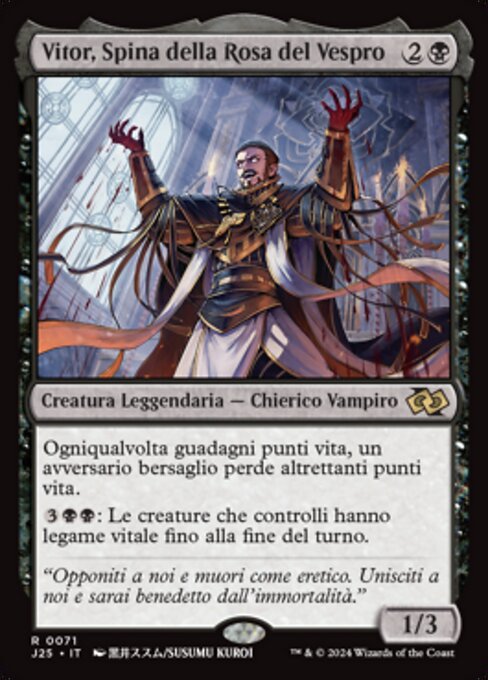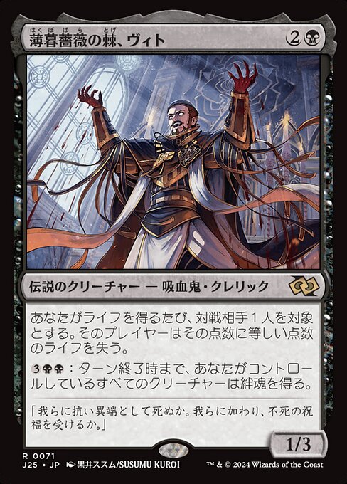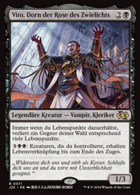 ![]() Variations— Parts— | Vito, Thorn of the Dusk Rose1 / 3 Whenever you gain life, target opponent loses that much life.
