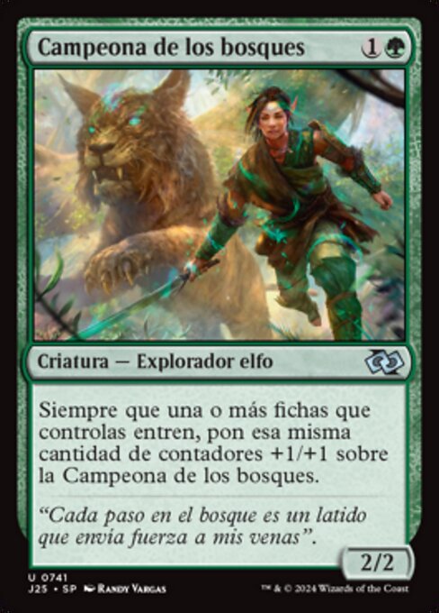 ![]() Variations— Parts— | Woodland Champion2 / 2 Whenever one or more tokens you control enter, put that many +1/+1 counters on this creature.