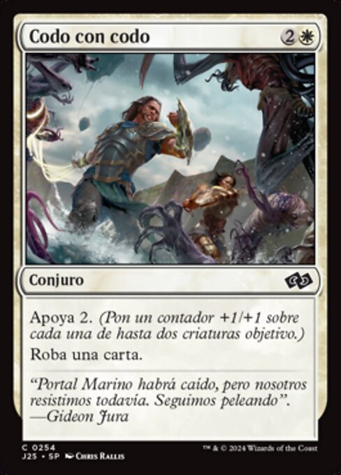 ![]() Variations— Parts— | Codo con codoApoya 2. (Pon un contador +1/+1 sobre cada una de hasta dos criaturas objetivo.) Roba una carta.