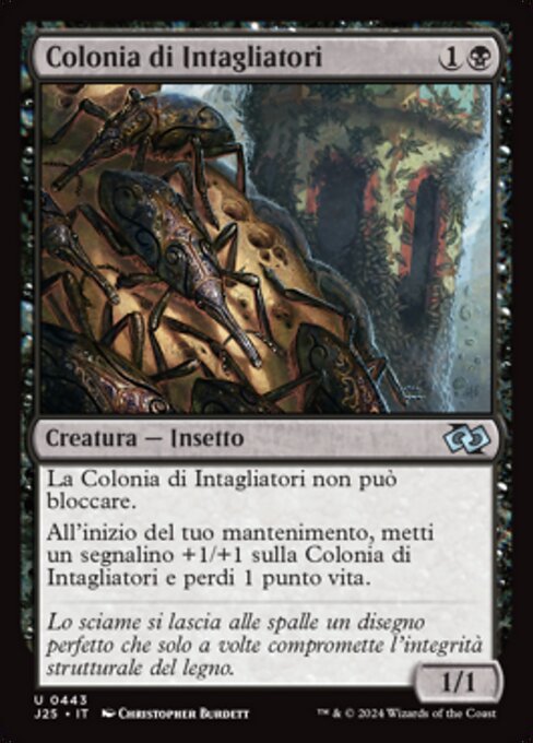 |  Variations— Parts— | Colonia de ornamentadores1 / 1 La Colonia de ornamentadores no puede bloquear. Al comienzo de tu mantenimiento, pon un contador +1/+1 sobre la Colonia de ornamentadores y pierdes 1 vida.