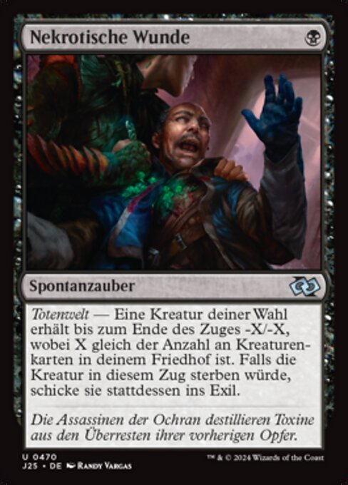 |  Variations— Parts— | Herida necróticaDespojos — La criatura objetivo obtiene -X/-X hasta el final del turno, donde X es la cantidad de cartas de criatura en tu cementerio. Si esa criatura fuera a morir este turno, en vez de eso, exíliala.