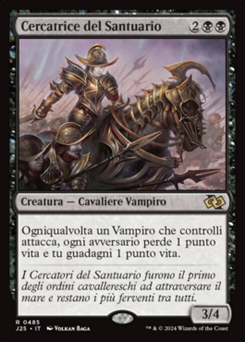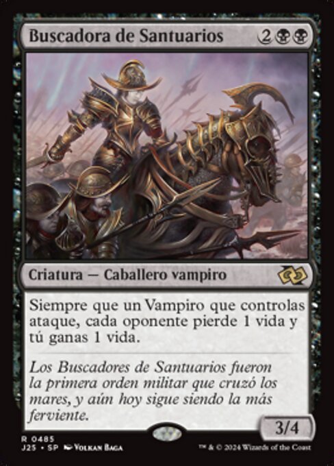 ![]() Variations— Parts— | Buscadora de Santuarios3 / 4 Siempre que un Vampiro que controlas ataque, cada oponente pierde 1 vida y tú ganas 1 vida.