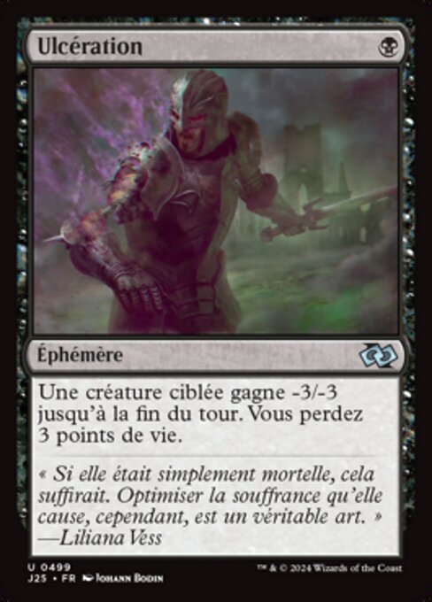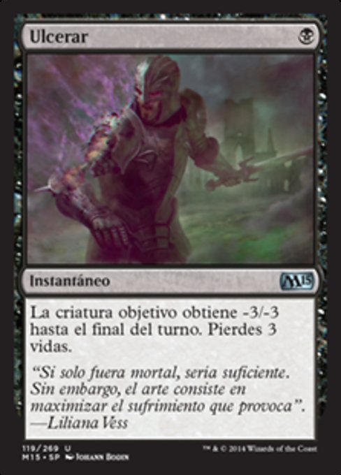 ![]() Variations— Parts— | UlcerarLa criatura objetivo obtiene -3/-3 hasta el final del turno. Pierdes 3 vidas.
