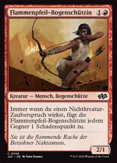 |  Variations— Parts— | Arquera flamígera2 / 1 Siempre que lances un hechizo que no sea criatura, la Arquera flamígera hace 1 punto de daño a cada oponente.