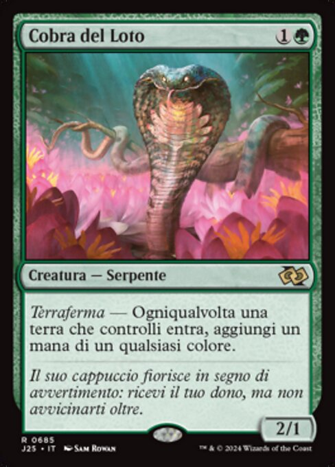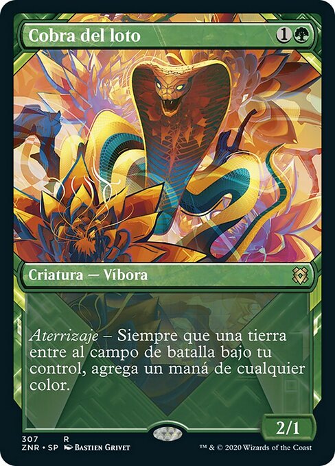 |  Variations— Parts— | Cobra del loto2 / 1 Aterrizaje — Siempre que una tierra que controlas entre, agrega un maná de cualquier color.