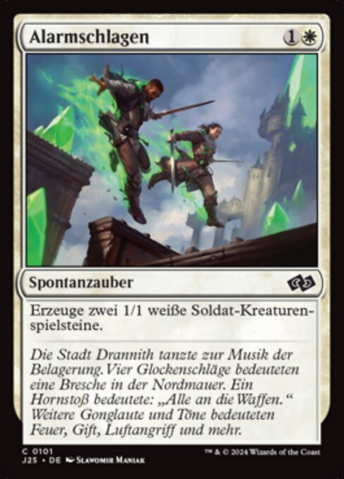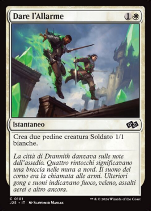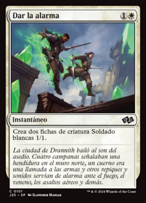 ![]() Variations— Parts— | Sonner l'alerteCréez deux jetons de créature 1/1 blanche Soldat.