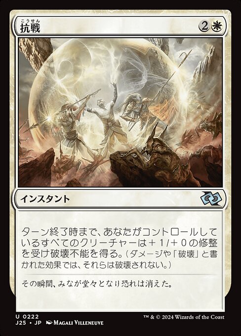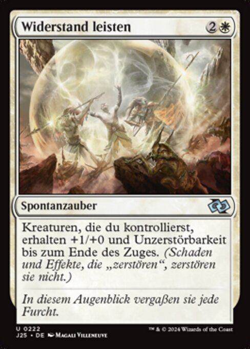 ![]() Variations— Parts— | Prise de positionLes créatures que vous contrôlez gagnent +1/+0 et acquièrent l'indestructible jusqu'à la fin du tour. (Les blessures et les effets qui disent « détruisez » ne les détruisent pas.)