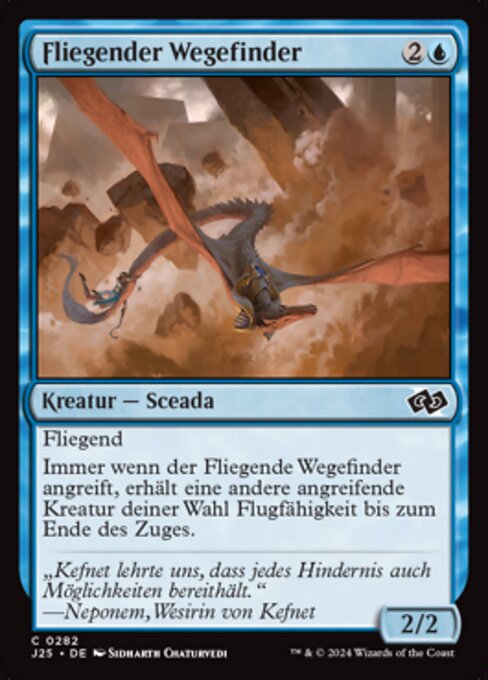 ![]() Variations— Parts— | Guide aérien2 / 2 Vol À chaque fois que le Guide aérien attaque, une autre créature attaquante ciblée acquiert le vol jusqu'à la fin du tour.