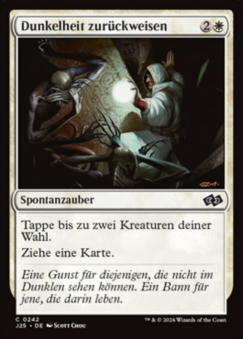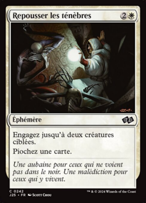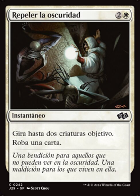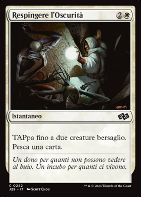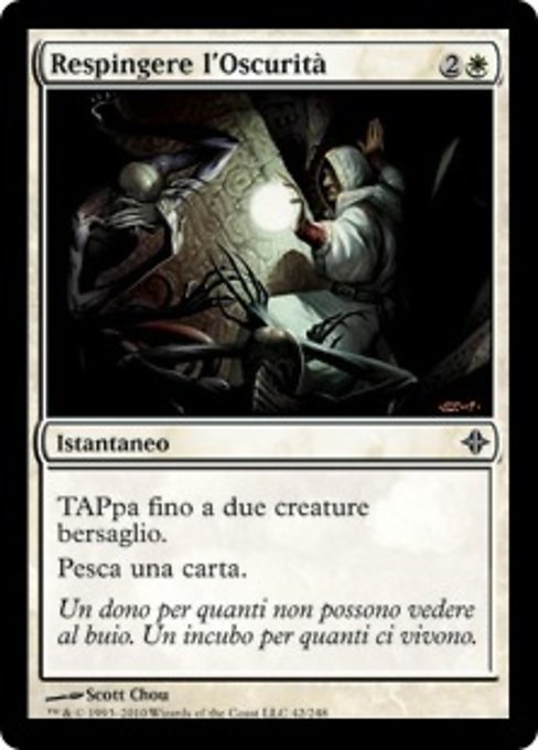 |  Variations— Parts— | Respingere l'OscuritàTAPpa fino a due creature bersaglio. Pesca una carta.
