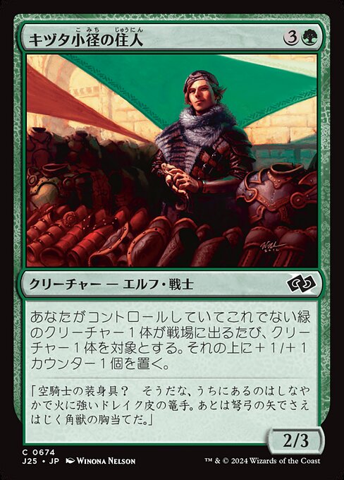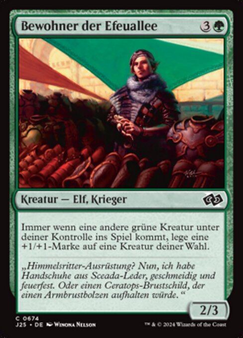 ![]() Variations— Parts— | Abitante di Strada dell'Edera2 / 3 Ogniqualvolta un'altra creatura verde che controlli entra, metti un segnalino +1/+1 su una creatura bersaglio.