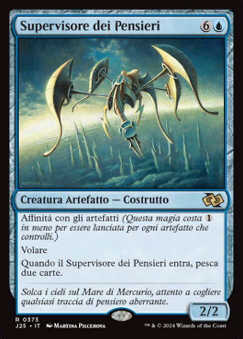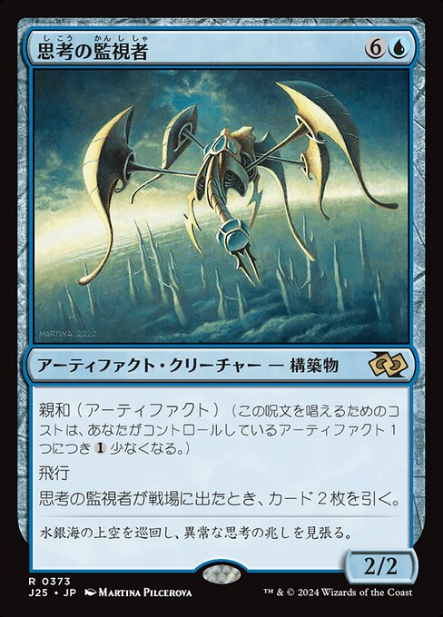 ![]() Variations— Parts— | 思考の監視者2 / 2 親和(アーティファクト)(この呪文を唱えるためのコストは、あなたがコントロールしているアーティファクト1つにつき 飛行 思考の監視者が戦場に出たとき、カード2枚を引く。