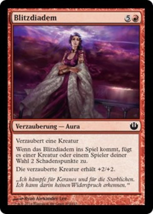 |  Variations— Parts— | Lightning DiademEnchant creature When this Aura enters, it deals 2 damage to any target. Enchanted creature gets +2/+2.