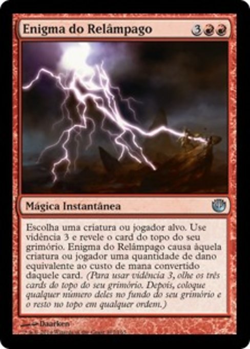 |  Variations— Parts— | Riddle of LightningChoose any target. Scry 3, then reveal the top card of your library. Riddle of Lightning deals damage equal to that card's mana value to that permanent or player.