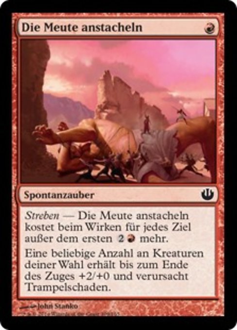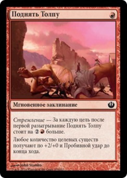 |  Variations— Parts— | Rouse the MobStrive — This spell costs  Any number of target creatures each get +2/+0 and gain trample until end of turn.