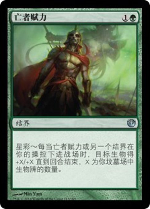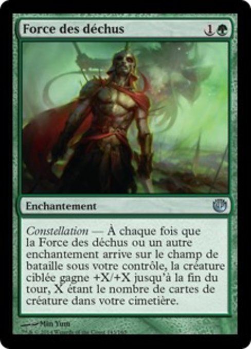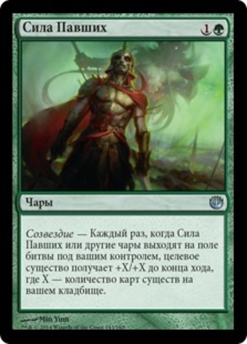 ![]() Variations— Parts— | Strength from the FallenConstellation — Whenever this enchantment or another enchantment you control enters, target creature gets +X/+X until end of turn, where X is the number of creature cards in your graveyard.