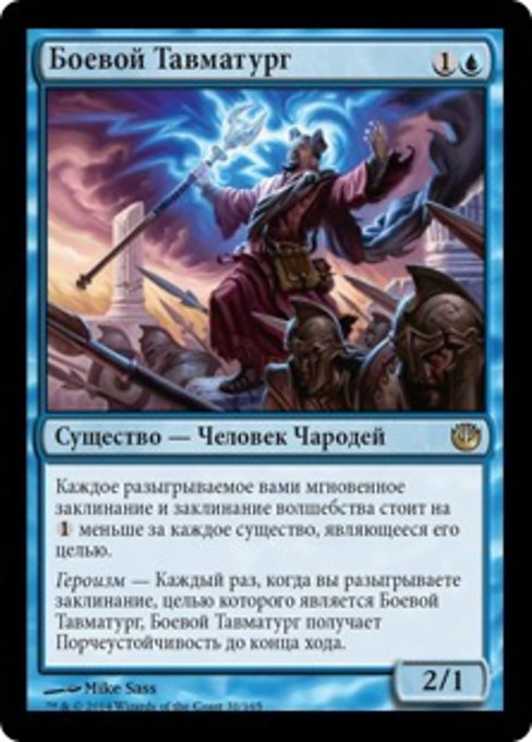 |  Variations— Parts— | Battlefield Thaumaturge2 / 1 Each instant and sorcery spell you cast costs  Heroic — Whenever you cast a spell that targets this creature, this creature gains hexproof until end of turn.