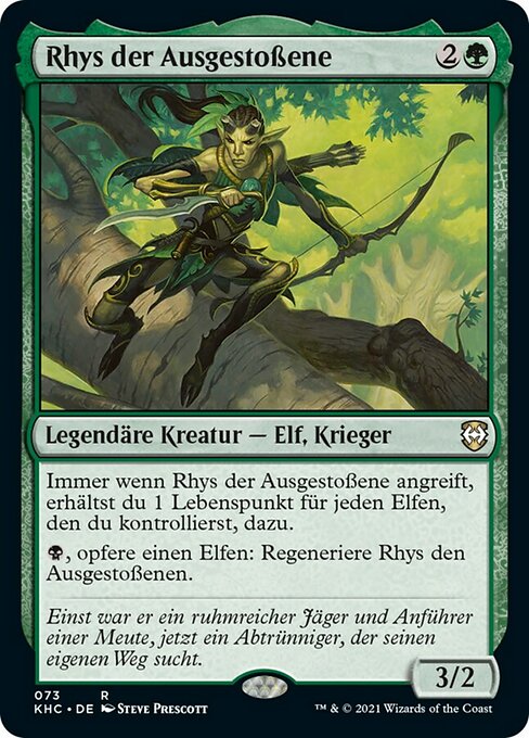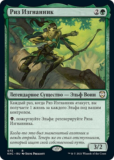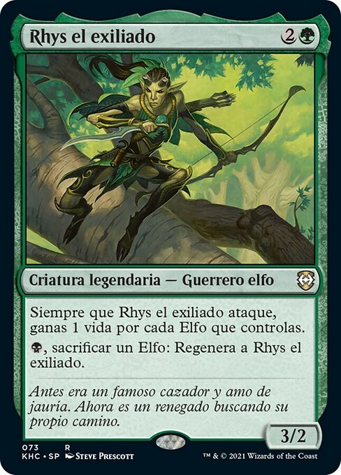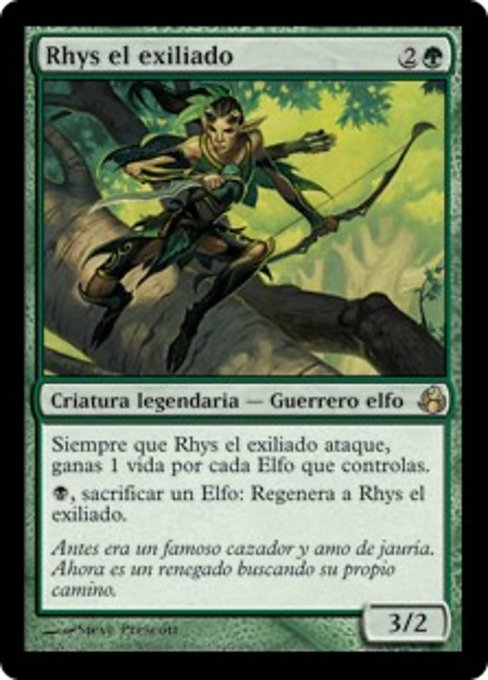 ![]() Variations— Parts— | Rhys el exiliado3 / 2 Siempre que Rhys el exiliado ataque, ganas 1 vida por cada Elfo que controlas.