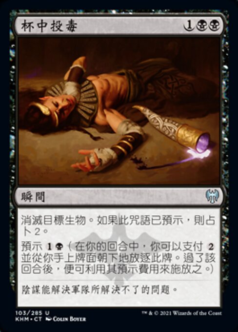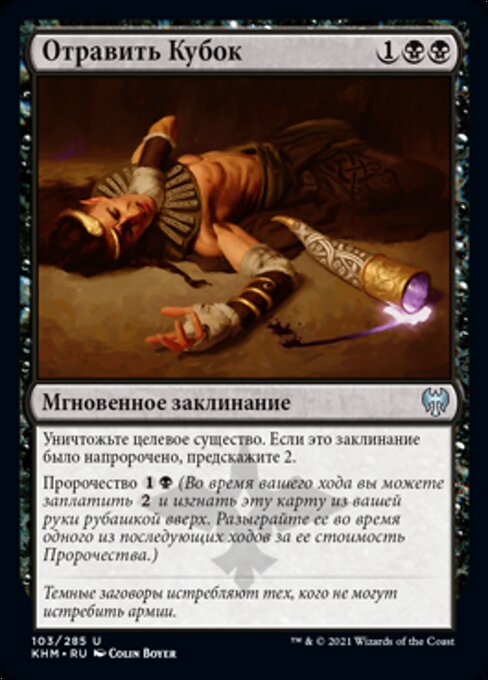 ![]() Variations : 1Parts : 2 | Poison the CupDestroy target creature. If this spell was foretold, scry 2. Foretell