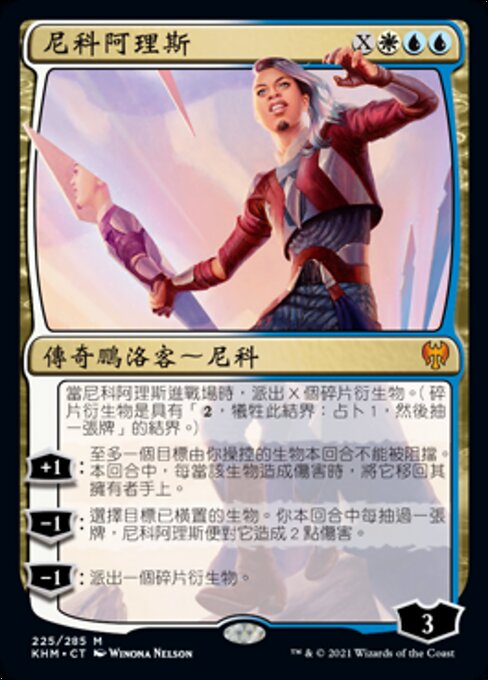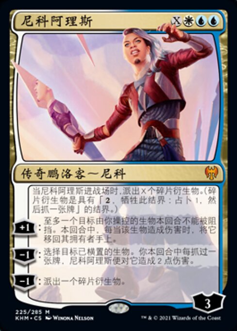 ![]() Variations : 1Parts : 2 | Niko ArisWhen Niko Aris enters, create X Shard tokens. (They're enchantments with " +1 : Up to one target creature you control can't be blocked this turn. Whenever that creature deals damage this turn, return it to its owner's hand. −1 : Niko Aris deals 2 damage to target tapped creature for each card you've drawn this turn. −1 : Create a Shard token.