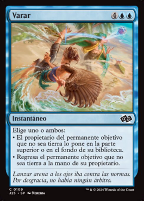 |  Variations— Parts— | VararElige uno o ambos: • El propietario del permanente objetivo que no sea tierra lo pone en la parte superior o en el fondo de su biblioteca. • Regresa el permanente objetivo que no sea tierra a la mano de su propietario.