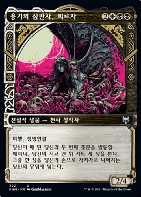 |  Variations : 1Parts— | Firja, Juíza do Valor2 / 4 Voar, vínculo com a vida Toda vez que você conjurar sua segunda mágica a cada turno, olhe os três cards do topo de seu grimório. Coloque um deles em sua mão e o restante em seu cemitério.