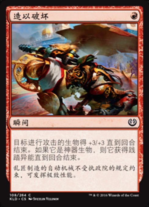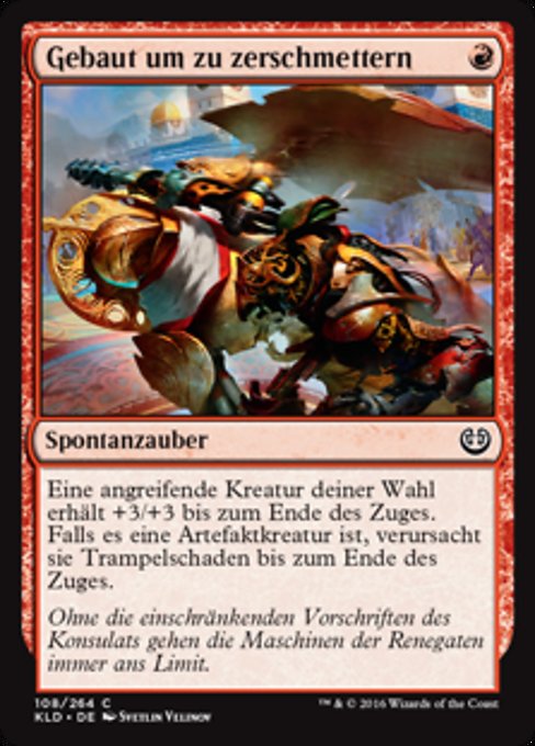 ![]() Variations— Parts— | Built to SmashTarget attacking creature gets +3/+3 until end of turn. If it's an artifact creature, it gains trample until end of turn.