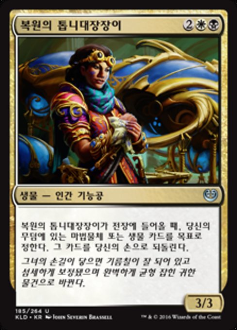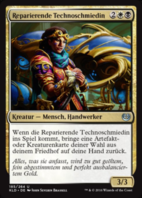 ![]() Variations— Parts— | Restoration Gearsmith3 / 3 When this creature enters, return target artifact or creature card from your graveyard to your hand.