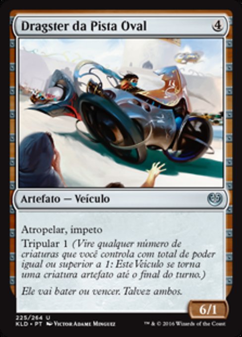 ![]() Variations— Parts— | Ovalchase Dragster6 / 1 Trample, haste Crew 1 (Tap any number of creatures you control with total power 1 or more: This Vehicle becomes an artifact creature until end of turn.)