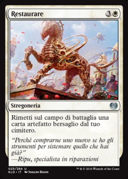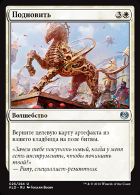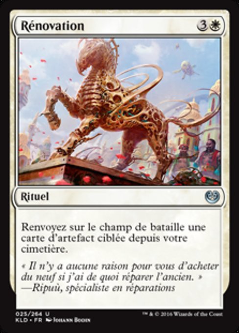 ![]() Variations— Parts— | RefurbishReturn target artifact card from your graveyard to the battlefield.