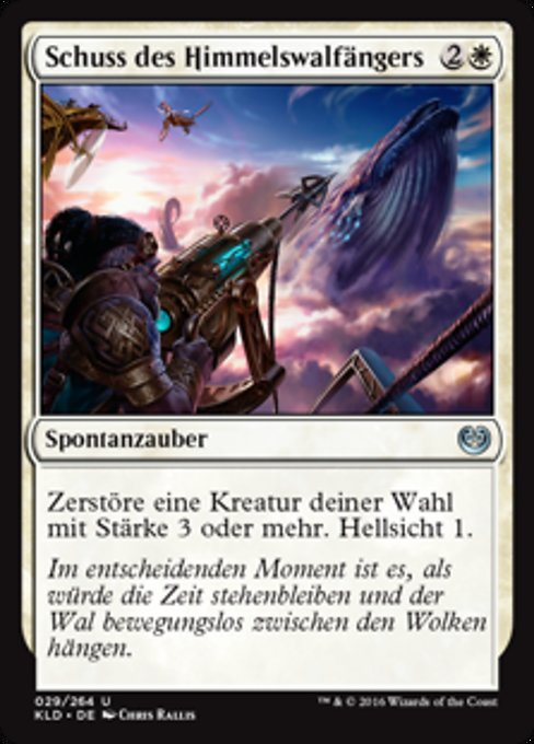 |  Variations— Parts— | Disparo de ballenero celesteDestruye la criatura objetivo con fuerza de 3 o más. Adivina 1.