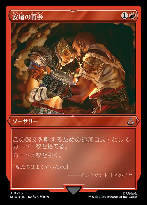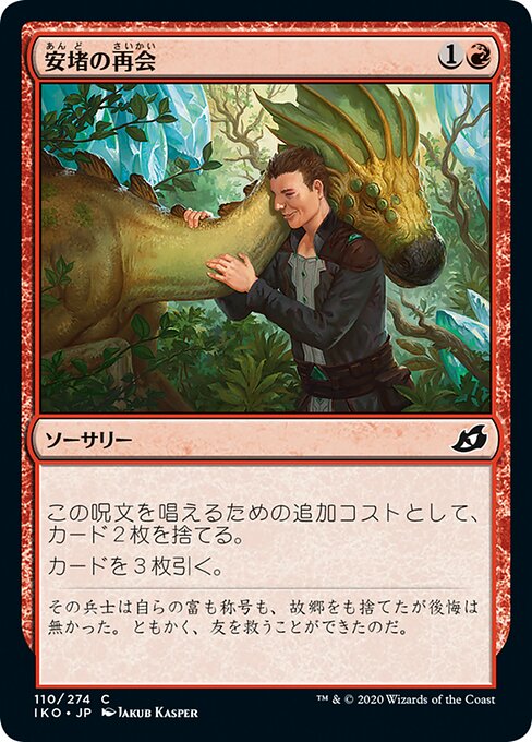 |  Variations— Parts— | 安堵の再会安堵の再会を唱えるための追加コストとして、カード2枚を捨てる。 カードを3枚引く。