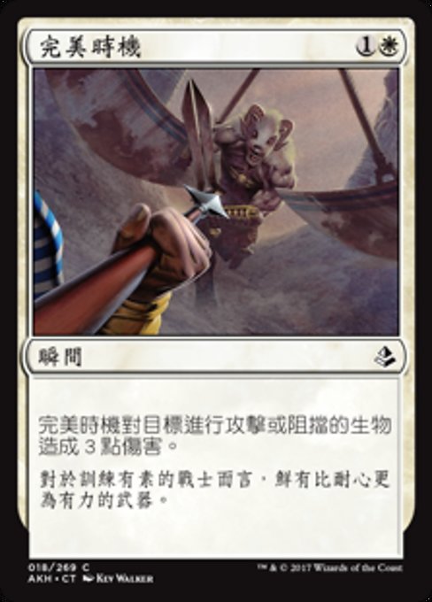 |  Variations— Parts— | 完美時機完美時機對目標進行攻擊或阻擋的生物造成3點傷害。